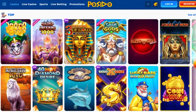 Chez Posido Casino France, nous proposons une bibliothèque riche et variée de plus de 2 000 jeux, adaptée à tous les profils de joueurs. Que vous recherchiez des machines à sous dynamiques, des jeux de table classiques, des sessions immersives avec croupiers en direct ou des titres à jackpots prometteurs, notre plateforme vous offre une qualité fiable et un divertissement captivant signé Posido Casino.